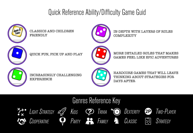 With a broad selection of games in our library, our quick reference ability guide, combined with our game genres box stickers will help provide a great experiance
