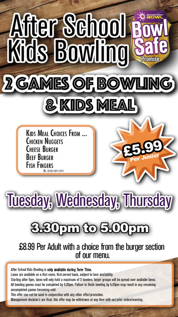 All bowling games must be completed by 6pm. Failure to finish bowling by 6pm may result in any remaining uncompleted frames becoming void.